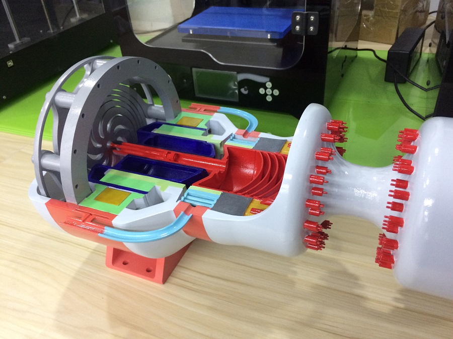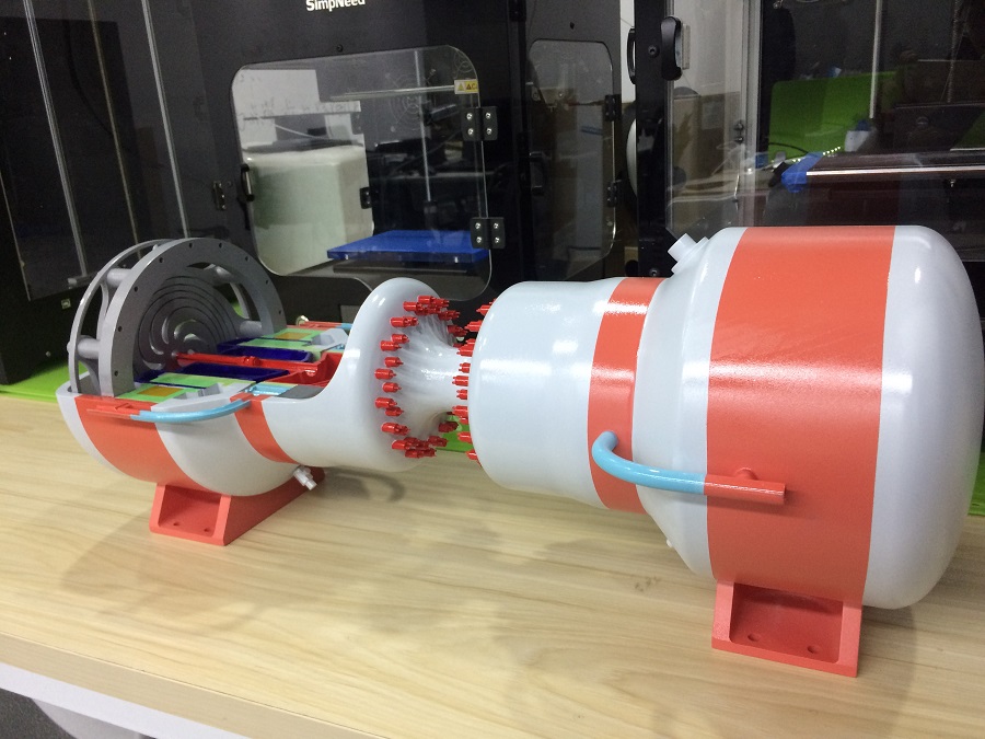 用P600 SLA光固化3D打印設備打印出高精度白模,成功地模擬了海默流量計產品的尺寸和結構特征,然后再經過噴漆上色等后處理工藝,在最快的時間內完成了參展模型的交付。